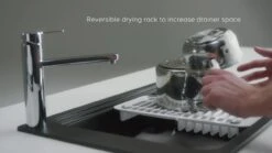 GoodHome Romesco Linea Black Granite 1 Bowl Sink & Drainer (W)515mm X (L)880mm