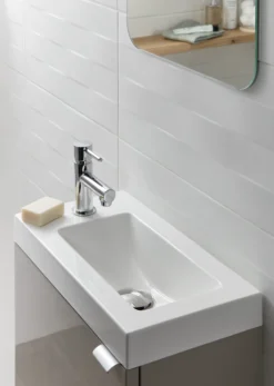 This resin single bowl wash basin from Cooke and Lewis’ Beni range has a single tap hole ready for you to pick the mixer tap that suits you.