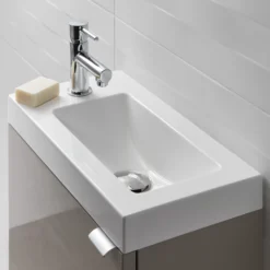 - This cloakroom basin is for use with the Imandra range of cloakroom vanity units. The unslotted waste supplied is for use with basins that do not have a built-in overflow, if a basin does not have an overflow, the waste must stay open slightly in order for the water to slowly drain away.