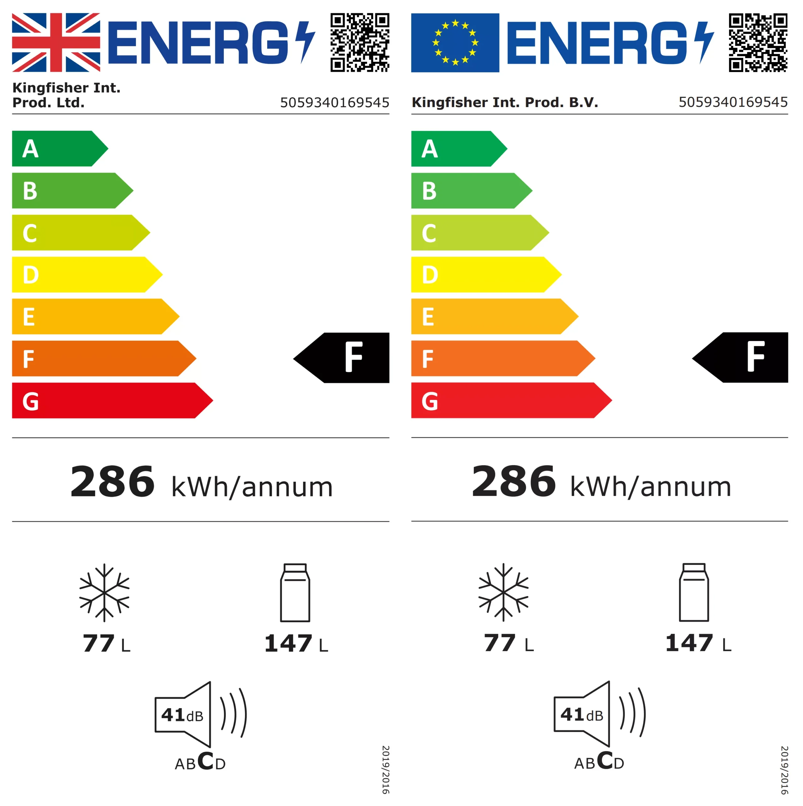 | Annual energy consumption | 286kWh |