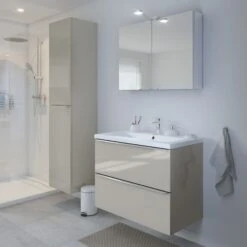 Bathrooms can be busy, cluttered spaces. So, we’ve designed the Imandra range – a smart modular furniture solution that fits any size, maximises storage and is built to last. This set comes with the Imandra vanity unit in Taupe and Mila basin.