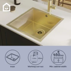 This sink from GoodHome offers a reliable, functional sink without compromising on style, with its stunning brushed brass colour that will add a luxurious touch to any kitchen.