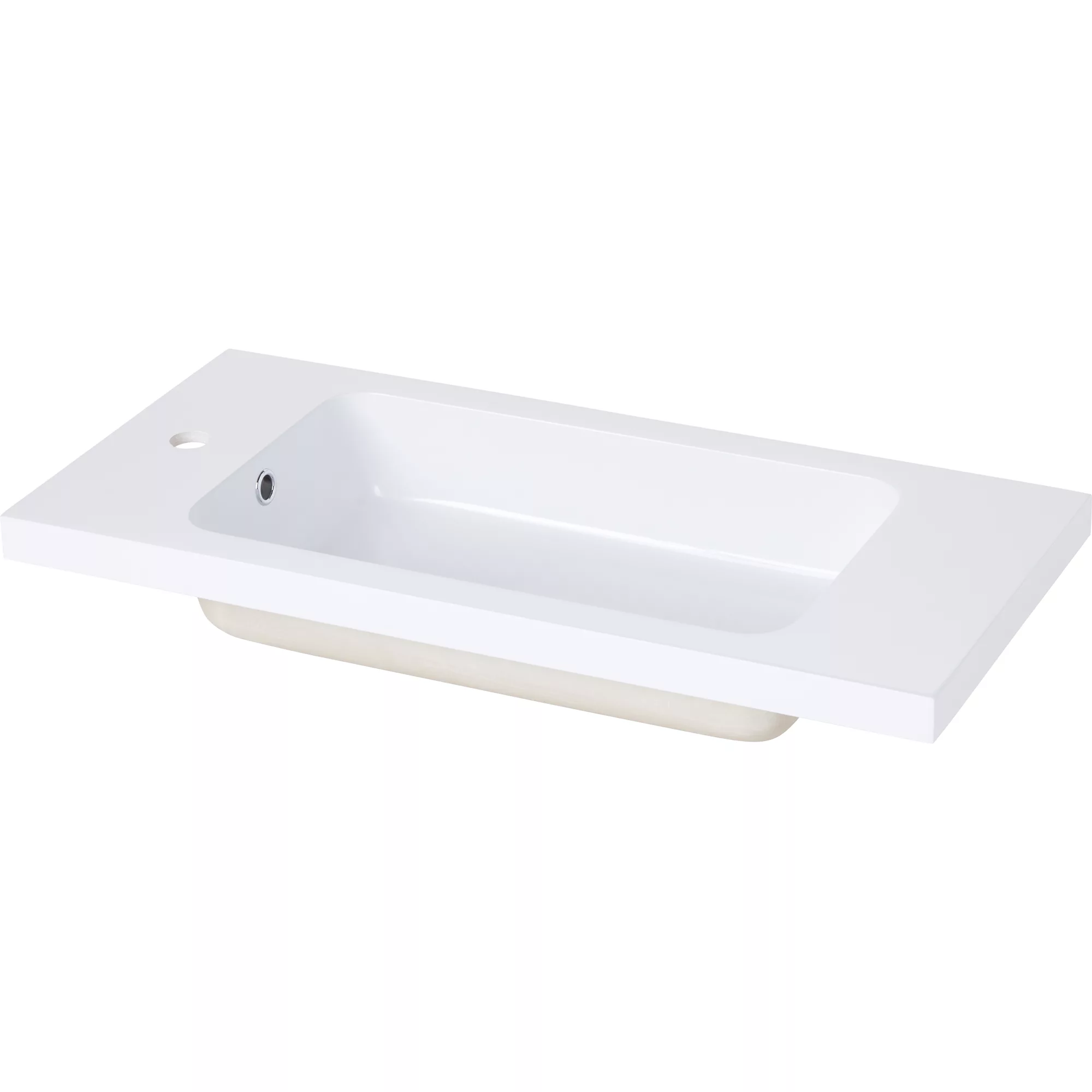This GoodHome resin single bowl vanity top from Ladoga range has a single tap hole ready for you to pick the mixer tap that suits you.