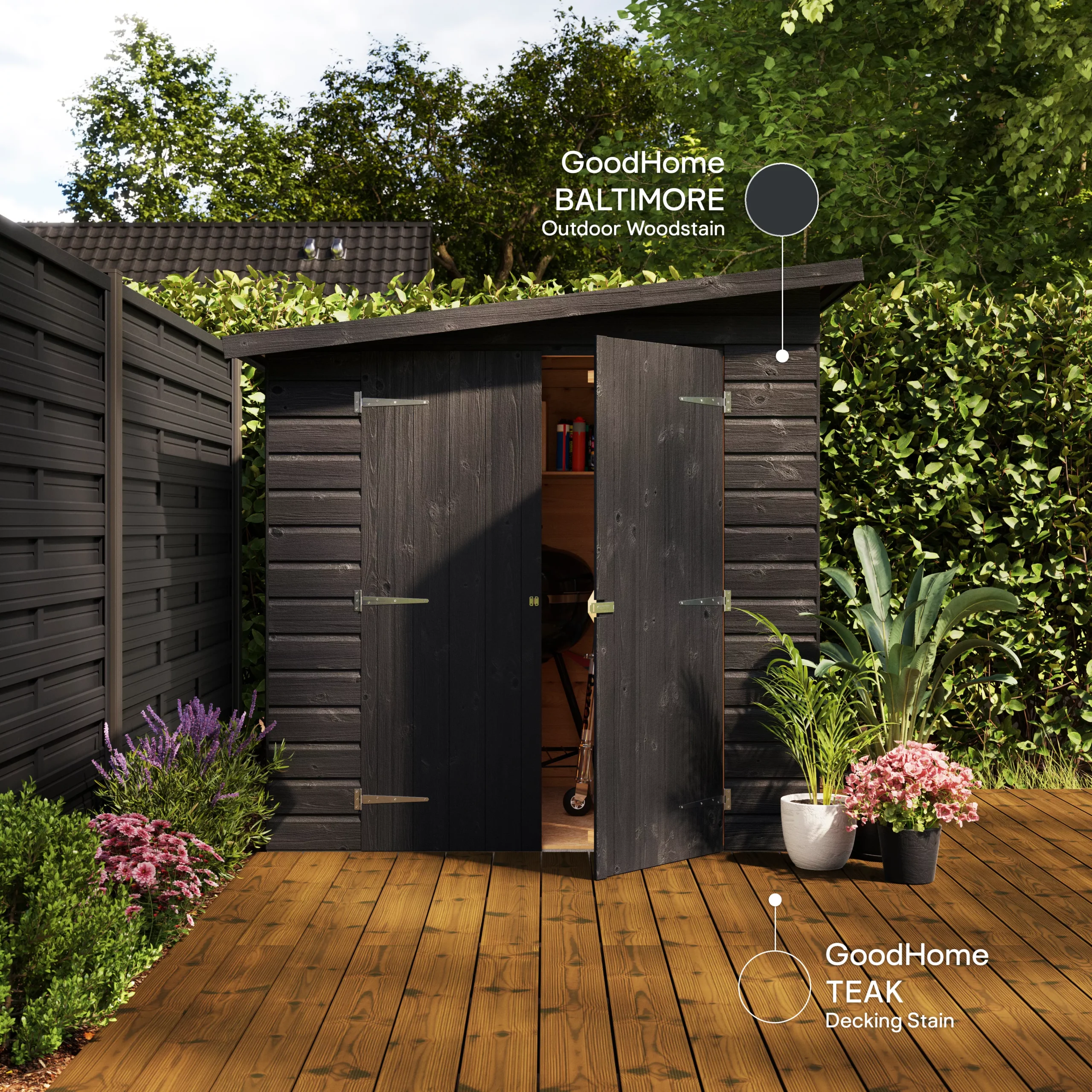GoodHome Outdoor Baltimore Satin Quick Dry Wood Stain, 2.5L