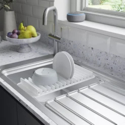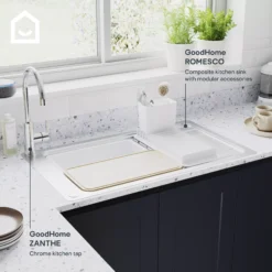 The Romesco sink from GoodHome maximises functionality and space with integrated modular accessories. This sink is a standard size, making it ideal to retrofit an existing sink, and has a larger drainer size for increased drainer capacity.