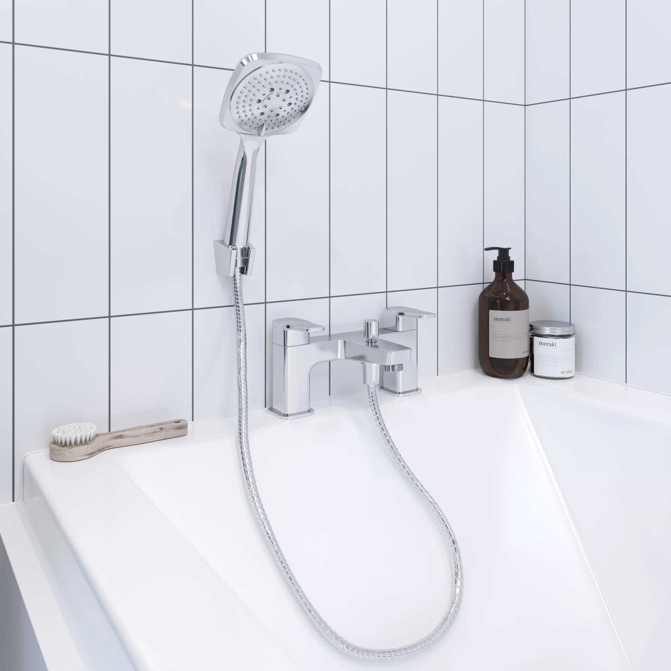 - Comes with 1x bath/shower filler (quarter turn valve), 1x shower head, 1x showerhead holder, 1x hose, 1x fixing kit and 1x instruction manual